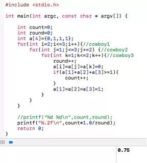 这名学员随即拿出了他的解题过程,原来他将问题进行拆解,算出了每个牛仔的存活概率,并正确得到了最终答案:75%。
